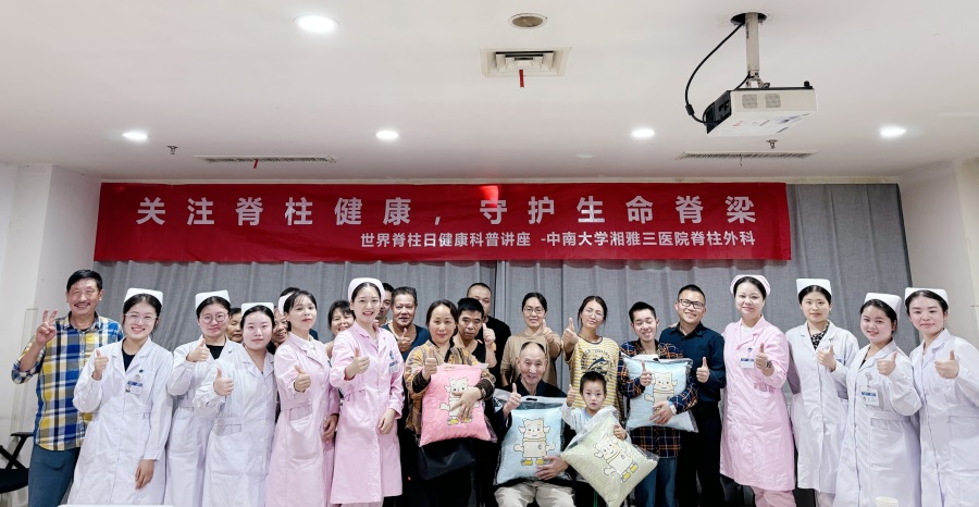 2023年10月16日是第13个世界脊柱健康日,中南大学湘雅三医院脊柱外科开展“关注脊柱健康,守护生命脊梁”主题爱心义诊,普及颈腰椎健康保健常识,指导广大病友科学锻炼颈腰椎和合理寻医问药。