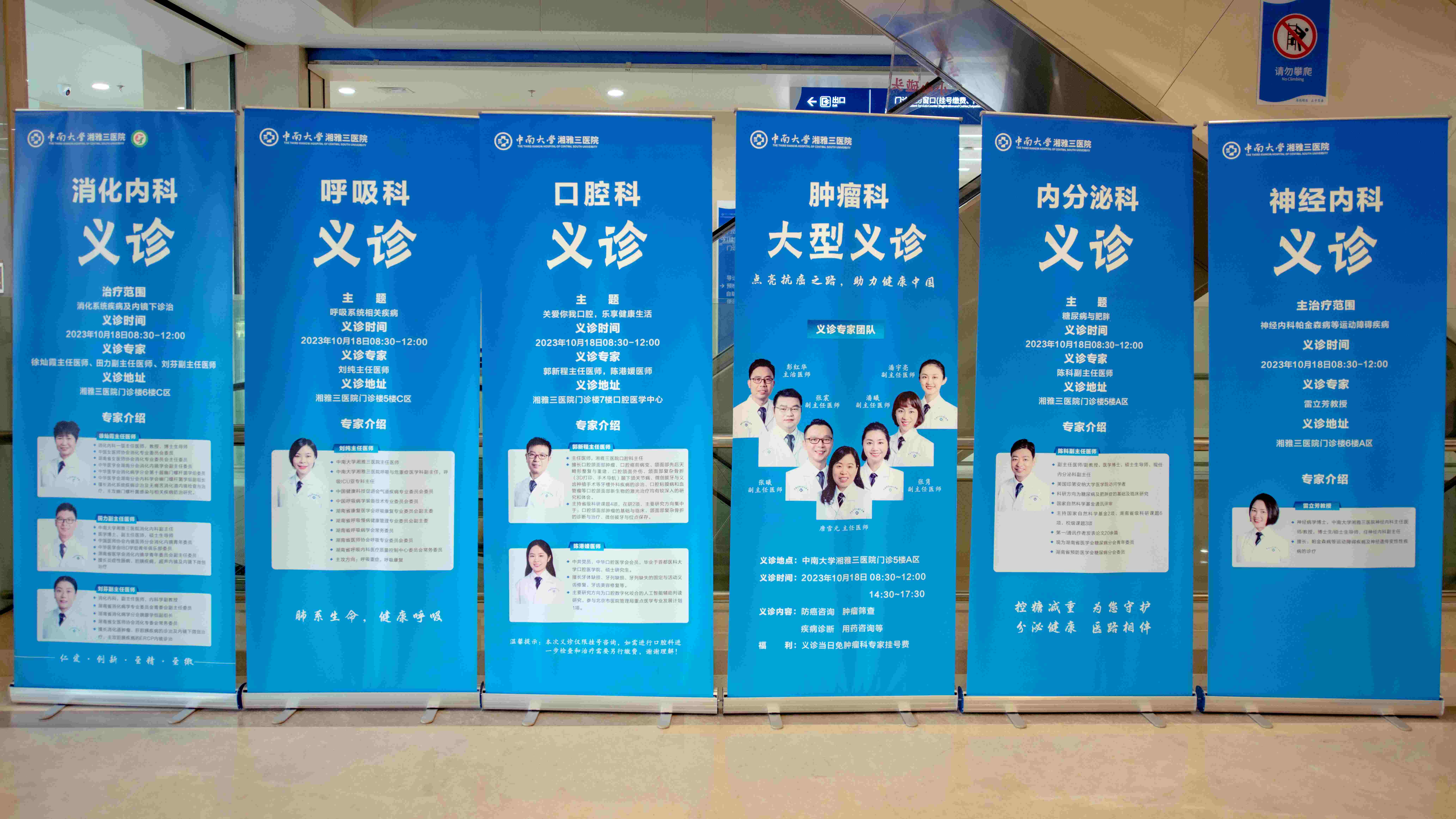 2023年10月18日,中南大学湘雅三医院门诊部开展“新启程勇当担 为健康保驾护航”义诊活动。此次义诊组织了肿瘤科、消化科、呼吸与危重症医学科、口腔科、神经内科、内分泌科等6个临床重点专科的15名专家参与,旨在以实际行动积极践行守护人民群众生命安全与身体健康的使命。