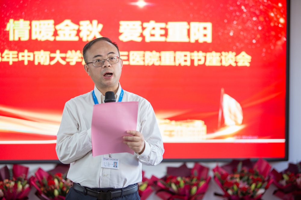 江泓院长在致辞中着重向老同志介绍了医院发展情况。他要求,医院要进一步用心用情做好离退休老年工作:一是聚焦实际需求,提高老同志福利待遇;二是丰富文化活动,营造尊老爱老氛围,医院将积极组织老同志参加学校、医院的文化艺术、体育娱乐及各种健康向上的活动;三是把握工作重点,发挥老同志优势,医院将进一步鼓励、支持和引导老教授在医院教学、科研、督导工作中充分发挥余热,将老干部身上特有的优势、特有的威信、特有的资源充分释放,为新湘雅高质量发展贡献积极力量。