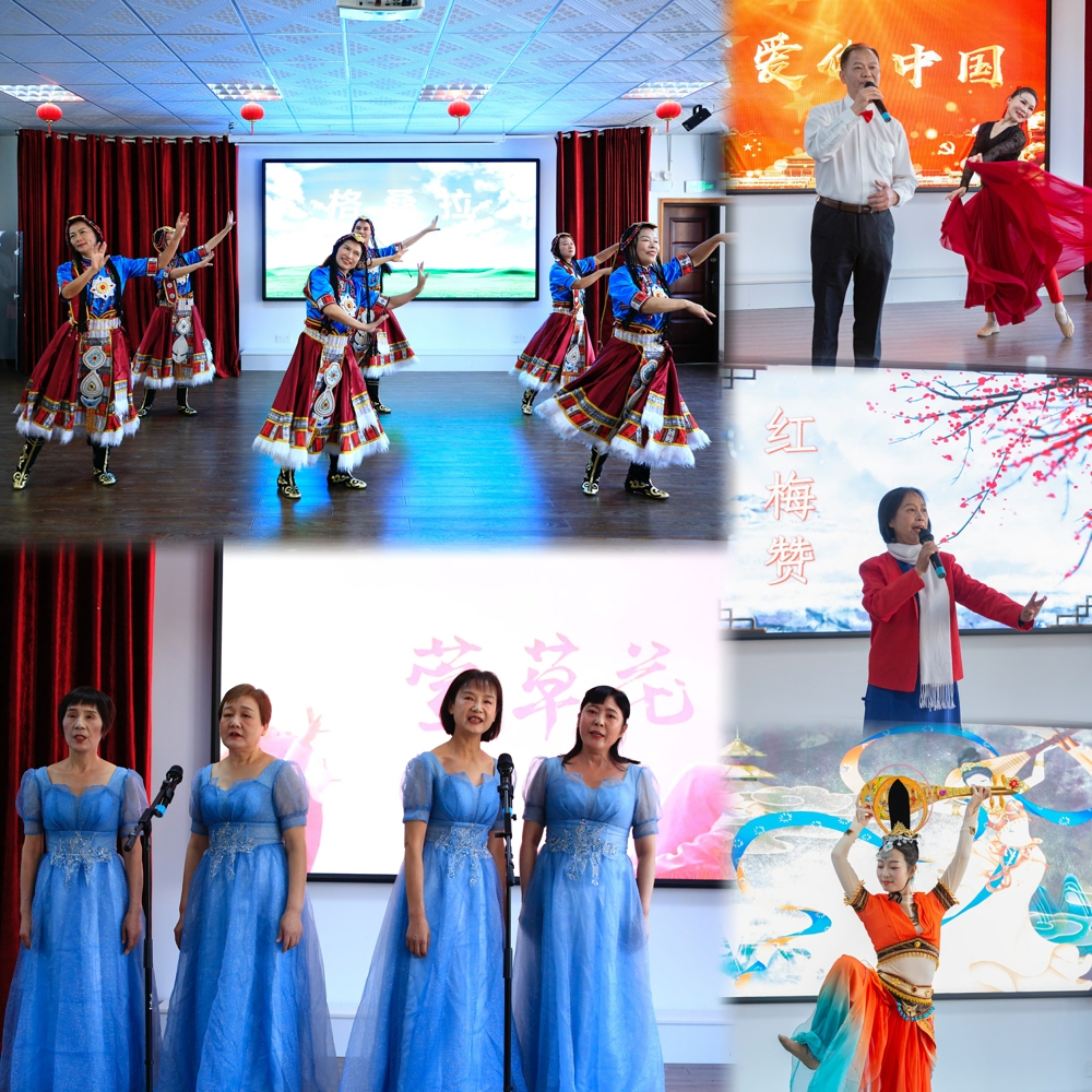 在现场,离退休办工作人员精心策划组织老同志表演的文娱节目精彩纷呈。开场舞《格桑拉》有着浓烈的藏族风情,热烈奔放;女声二重唱《萱草花》优美动人,抚慰人心;院团委选送的节目敦煌舞蹈《反弹琵琶》灵动俏丽,引人入胜;肖明老师用她的保留节目——京歌重新演绎《红梅赞》别有一番韵味;王伟玲、詹瑞森两名老师演绎的歌伴舞《我爱你中国》表达了浓浓的爱国情怀;最后由青年教师赵锴、蔡菁菁和8名学生代表们与34名老同志登台共唱《祖国不会忘记》,大家情绪高昂,歌声铿锵有力将会场气氛推向高潮。活动现场欢声洋溢,祥和温馨,其乐融融。会场播放的离退休工作汇报视频《锐意进取 开拓创新》总结了近10年医院离退休部门的工作成绩和服务管理经验,用心用情做好了新时代的离退休工作,获得了在场的院领导、嘉宾和老同志们的热烈掌声。