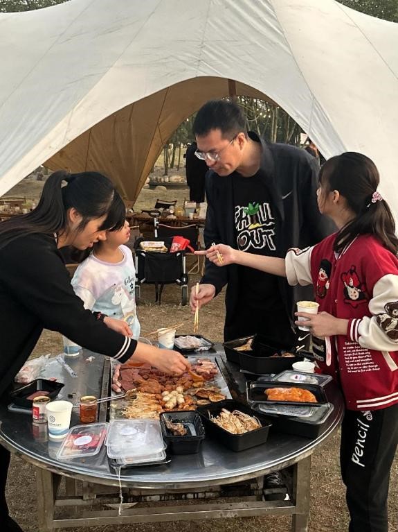 黄昏时分,大家在天幕下进行自助烧烤:一边享受着烤肉的香气,一边分享着各自的故事和经历。孩子们也跃跃欲试,动手参与其中。这不仅拉近了父母与孩子的距离,也拉近了同事间的距离,让大家结合成一个更加紧密的整体,充分提高了职工的获得感、认同感与幸福感。