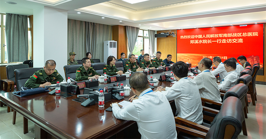 10月25日,中国人民解放军南部战区总医院院长郑溪水一行来院参观交流。医院党委书记何庆南,党委副书记、院长江泓出席会议,会议由医院副院长孙传政主持。中国人民解放军联勤保障部队第九二〇医院院长王炳军、南部战区药品仪器监督检验站政治委员何鹃、联勤保障部队第九二一医院院长肖钧等人陪同参加。