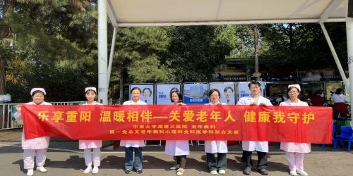 金秋十月,为提高老年人健康水平,营造尊老敬老的社会风气,中南大学湘雅三医院老年病科秉承着“敬老、爱老、助老”的传统美德,于10月21日至23日开展了庆祝重阳节系列活动。活动分院外义诊、送温暖进小区和老年病科健康讲座与认知训练互动三场,活动积极响应了国家对于提高全民健康素质的号召,更体现了老年病科对老年人群的关注与爱。