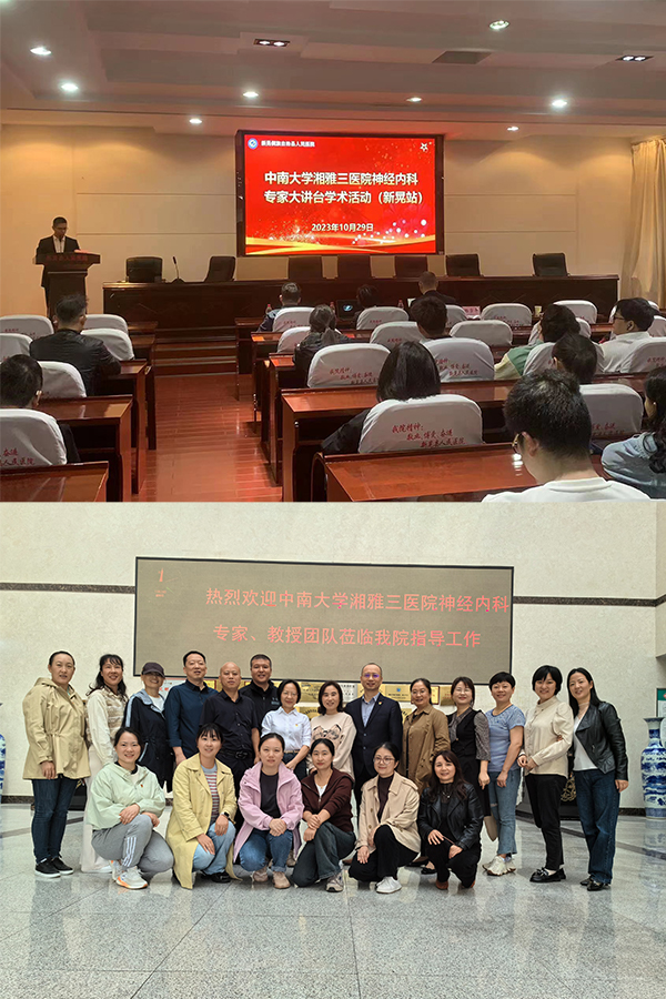 10月23日至27日,医院神经内科主任张如旭组织科室全体医护人员,通过院内、院外和线上线下相结合的方式,开展了一系列公益讲座和义诊活动。10月28日至10月29日,带领科室医护团队前往新晃县人民医院开展联合义诊、卒中筛查、学术讲座、教学查房等,并开展以“传承红色基因,共联共建预防卒中”为核心的主题党日。此次活动旨在推动党建与医疗服务深度融合,加强与基层医疗单位的沟通与交流。