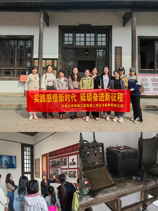 11月5日,中南大学湘雅三医院麻醉疼痛党支部赴湖南和平解放秘密电台工作站旧址、周之翰故居开展“实践感悟新时代 砥砺奋进新征程”主题党日学习。此次活动旨在通过开展红色教育纪念地学习,追随红色精神,汲取奋进力量,进一步深化学习贯彻习近平新时代中国特色社会主义思想主题教育,丰富主题教育载体,凝聚奋进力量。