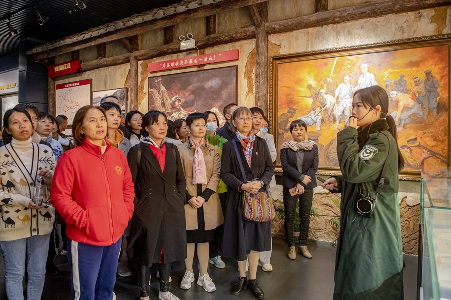 在红军长征湘江战役纪念馆,大家通过文物、图片资料、油画、模拟战斗场景以及带教老师的现场讲述,深入了解湘江战役的全过程和红军从1934年10月到1936年10月整个长征的历史。