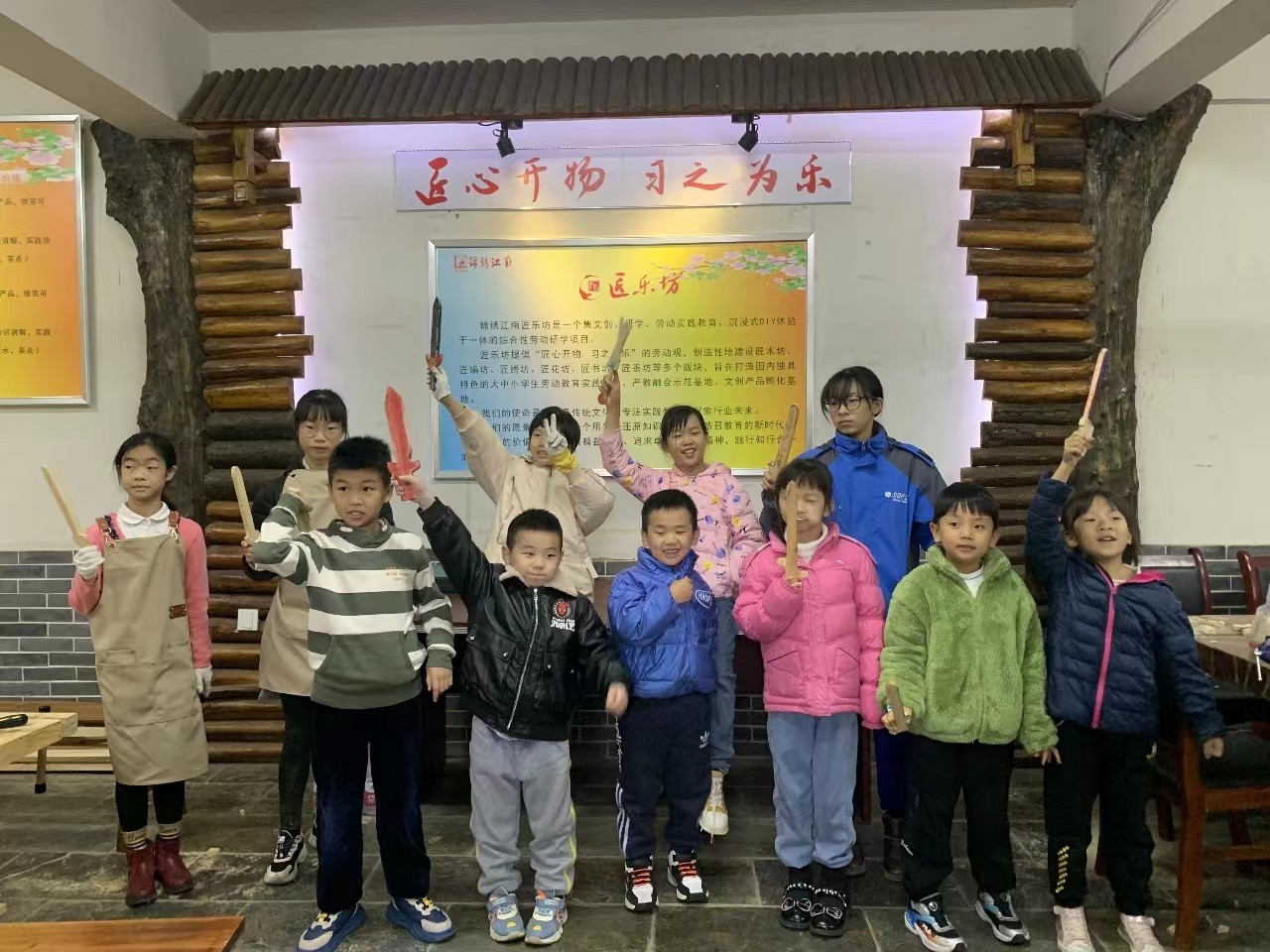 这两天天气骤冷,大家依然兴致高涨。上午是亲子手工木匠时间,小朋友们范儿十足,还没等师傅介绍完就摩拳擦掌,跃跃欲试。经过一个多小时的“敲敲打打”各种形状的刀剑工具豁然出现,有“屠龙刀、倚天剑、辟邪剑”等,充分展现了小朋友们天马天空的想象和大朋友们沉浸式的配合。