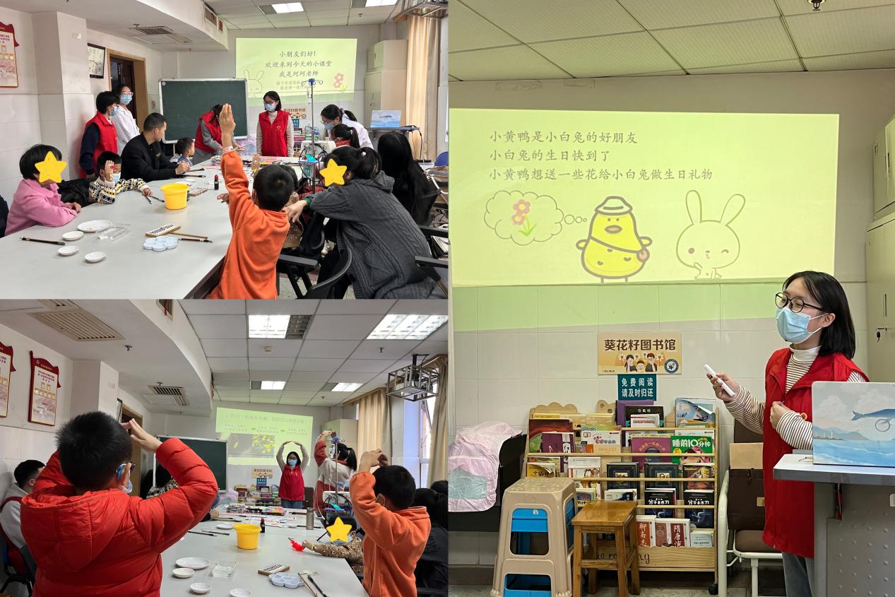 为让住院孩子们感受中国传统文化的魅力,体验国画的乐趣,2023年11月14日下午,院团委、医务社工与志愿服务指导中心联合五病区、公益组织开展了“冬天什么花会开”国画病房课堂活动,病房里水墨飘香。儿科五病区护士长蔡骞、驻点医务社工、湖南第一师范学院青年志愿者与住院孩子们在一起探寻国画之旅。
