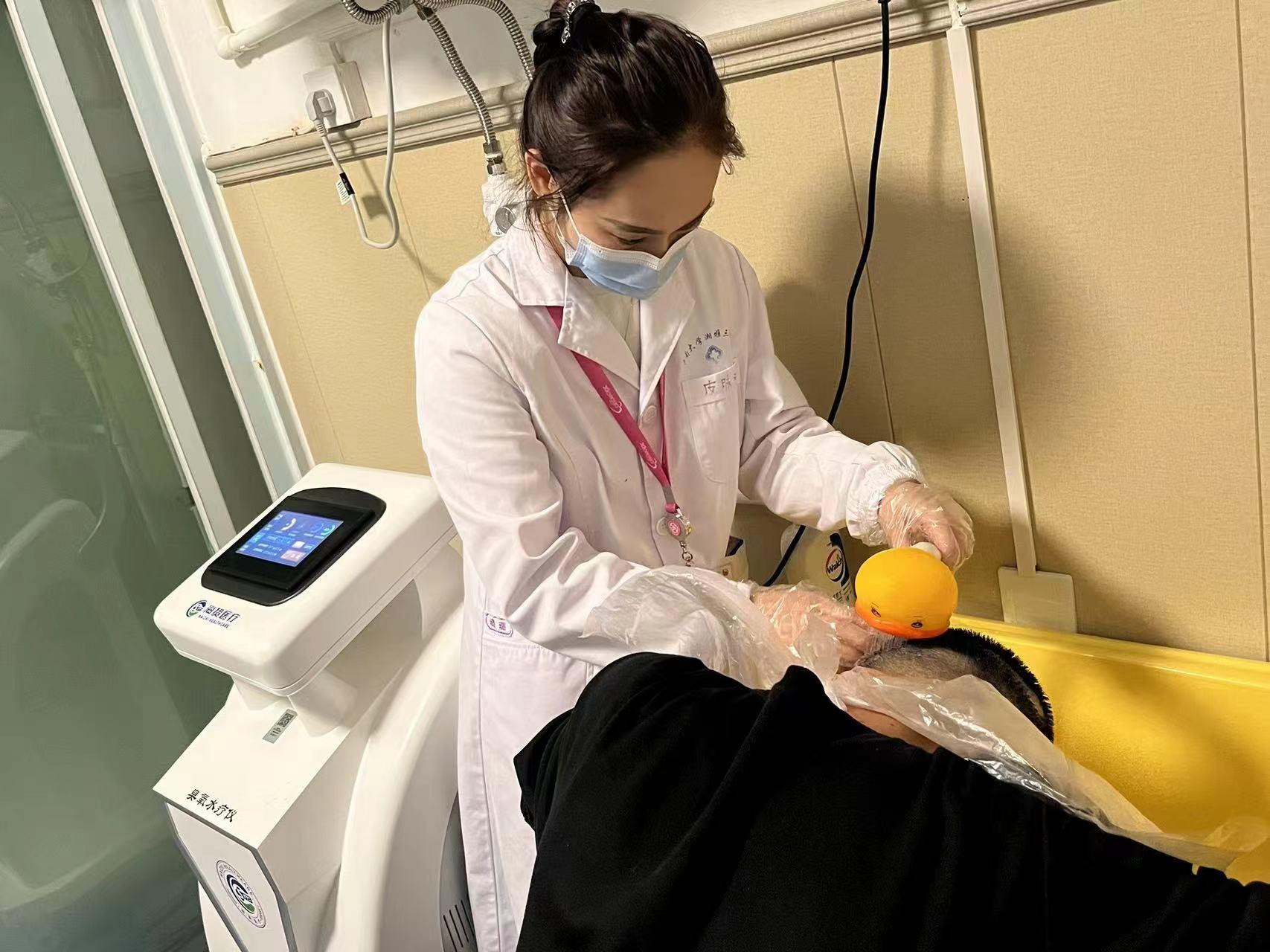 本次义诊中,周璐护士还为患者提供了免费的臭氧水疗治疗,并详细解答了清洁、保湿护肤等方面的常见问题。