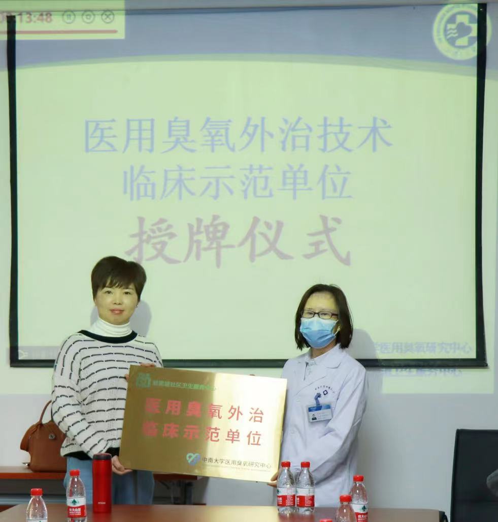 中南大学医用臭氧研究中心为侯家塘卫生服务中心授予了“医用臭氧外治技术临床示范单位”的牌匾,为基层医疗机构推广医用臭氧外治皮肤黏膜疾病技术提供首个基层应用示范点。未来,中南大学湘雅三医院皮肤性病科的公益之路将不断向前迈进,用实际行动”为人民办实事”的同时,以公益事业的蓬勃发展为医院高质量发展贡献力量。