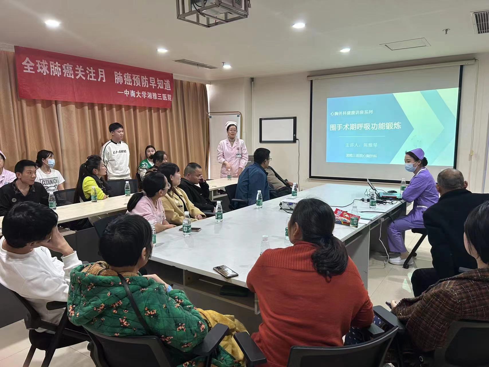 为呼吁广大群众重视肺癌的预防,普及肺癌规范化诊疗知识,中南大学湘雅三医院心胸外科于11月22日下午,在医院外科楼十楼示教室举办了“全球肺癌关注月·防癌知识早知道 ”为主题的健康科普讲座。