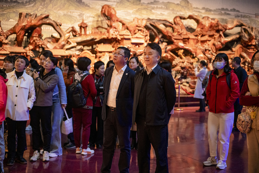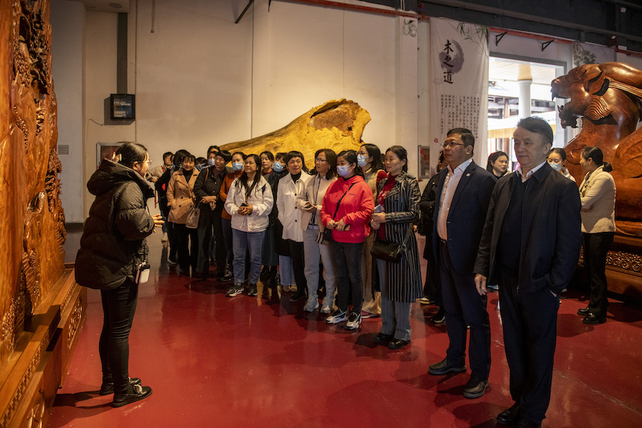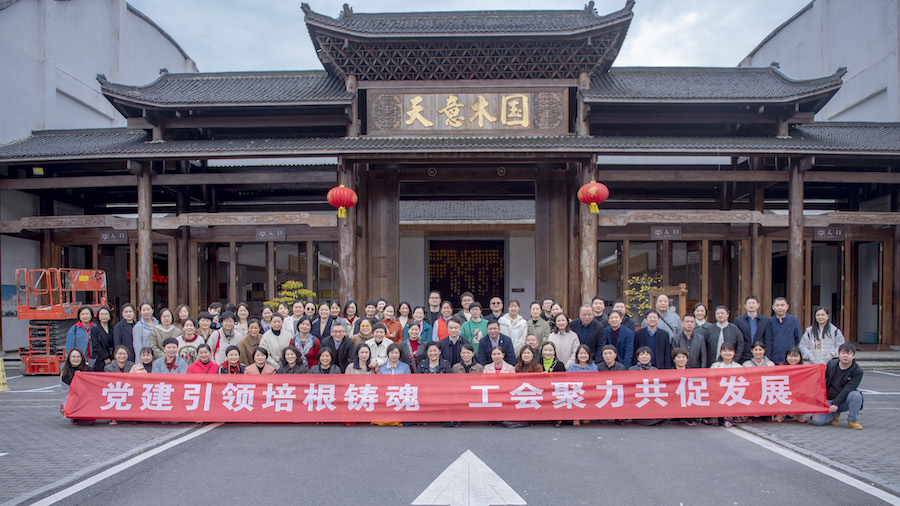 党课结束后,全体工会干部参观了天意木国展览馆。天意木国展览馆享有“寻根之旅”的美誉,“盘古开天”“后裔射日”穿越亘古,感受上古创世之神韵;“孔子教学”“万里长城”穿越历史长河,跨越上下五千年;“三国演义”“清明上河图”“二十四孝”展开一张张历史画卷,呈现出中华民族的文化自信与文化传承。
