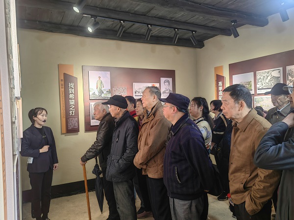 在周炳文烈士故居,老同志们通过讲解员了解到周炳文烈士的英雄事迹:1892年,革命烈士周炳文出生在群力村照霞冲,1922年加入中国共产党,历任中共湖南省委委员兼秘密机关负责人,湖南省苏维埃政府宣传委员会委员长,两湖工农赤卫队总指挥等职。1931年,由于叛徒出卖,中共湖南省委又遭破坏,敌人疯狂搜捕中共地下党员,周炳文不幸被捕。在狱中,周炳文经受酷刑和拷打,早已将生死抛开的他,还在狱中自设灵台,撰写自挽联。“肉躯壳无足轻重,但求身后有灵魂,死一时实生千古;鬼伎俩何等凶险,寄话党中诸巨子,鉴已往宜慎将来。”通过一张张照片、一段段文字、一件件实物、一个个革命故事,大家深刻地感受到周炳文用一生拯救中国人民于水深火热当中,他用生命为国家、为党、为人民传承红色血液的浴血奋斗、不怕牺牲的英雄热血。
