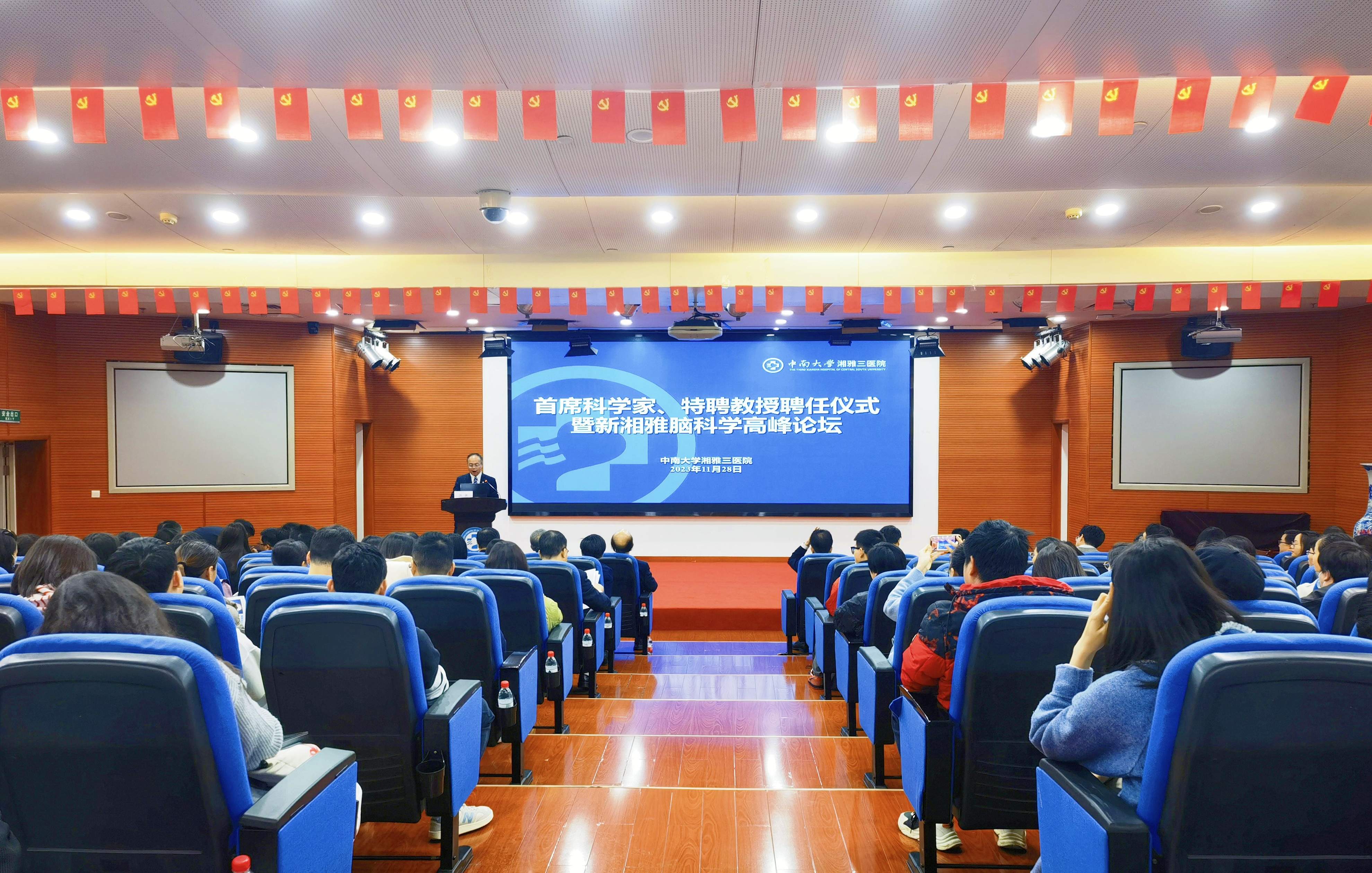 2023年11月28日,在建院34周年当日,中南大学湘雅三医院首席科学家、特聘教授聘任仪式暨新湘雅脑科学高峰论坛在医院外科楼学术报告厅顺利举行。