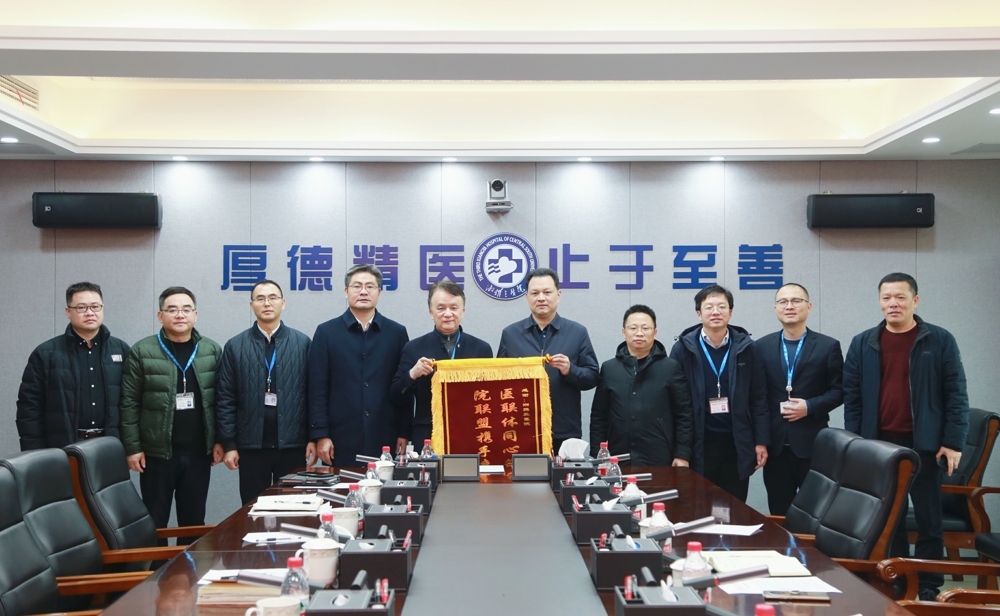 1月26日上午,邵阳县人民医院院长唐德军一行来院交流,转交邵阳县人民政府致中南大学湘雅三医院感谢信并赠送“医联体同心筑健康 院联盟携手惠百姓”锦旗。医院党委书记何庆南,党委委员、副院长朱利勇,副院长孙传政及相关职能部门负责人参加。会议由孙传政主持。