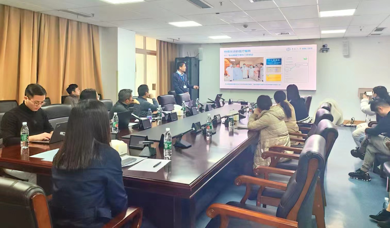 朱利勇对医院减重中心建设经验进行细致汇报,并对综合性减重中心存在的困难与问题进行探讨。黄二丹主任表示,湘雅三医院减重代谢外科及肥胖诊治在国内具有重要地位,因此本次调研也是国家卫健委卫生发展研究中心减重中心服务模式调研的第一站,与卫生发展研究中心在减重中心建设与构思上具有高度共识,期待在综合性减重中心建设经验分享与整合型减重卫生服务体系建设方面与湘雅三医院开展更加深入的合作;黄二丹主任进行了专科联盟到专病联盟的主题演讲,深刻阐明重大慢病综合性管理的重要性。主题汇报后,参会人员开展了热烈的对话与讨论。