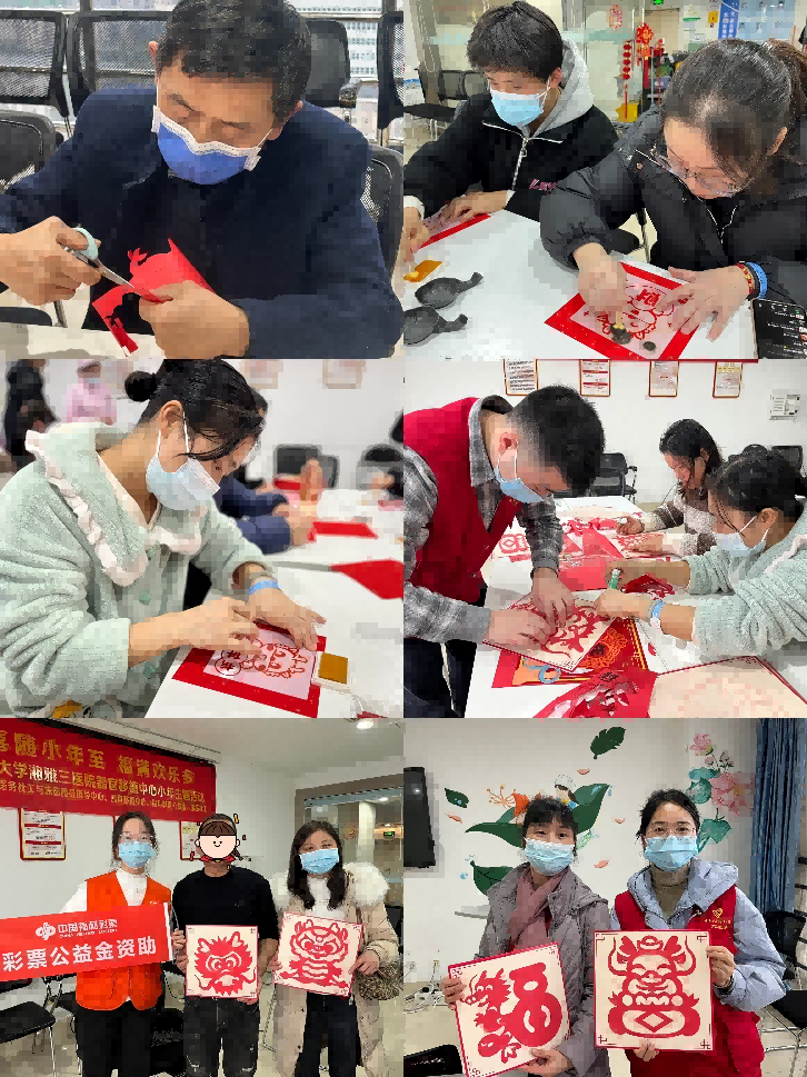 癸卯岁末,甲辰伊始,小年将至,年味愈浓。为弘扬中华优秀传统文化,让住院患者及家属感受节日氛围,中南大学湘雅三医院团委、医务社工与志愿服务指导中心联合湖南省雅医医务社会工作服务中心、长沙市中大阳光社工服务中心,在水滴公益、雅医基金会、中国福利彩票公益金等公益组织支持下,于1月30日、2月1日先后在器官移植中心、血液内科开展了小年关爱病友系列活动。团委书记程海威,团委副书记戴萍萍,血液内科主任李昕,14病区护士长阮春红,41病区护士长李成媛,驻点医务社工、部分医护人员、患者及陪护家属近百人参加活动。