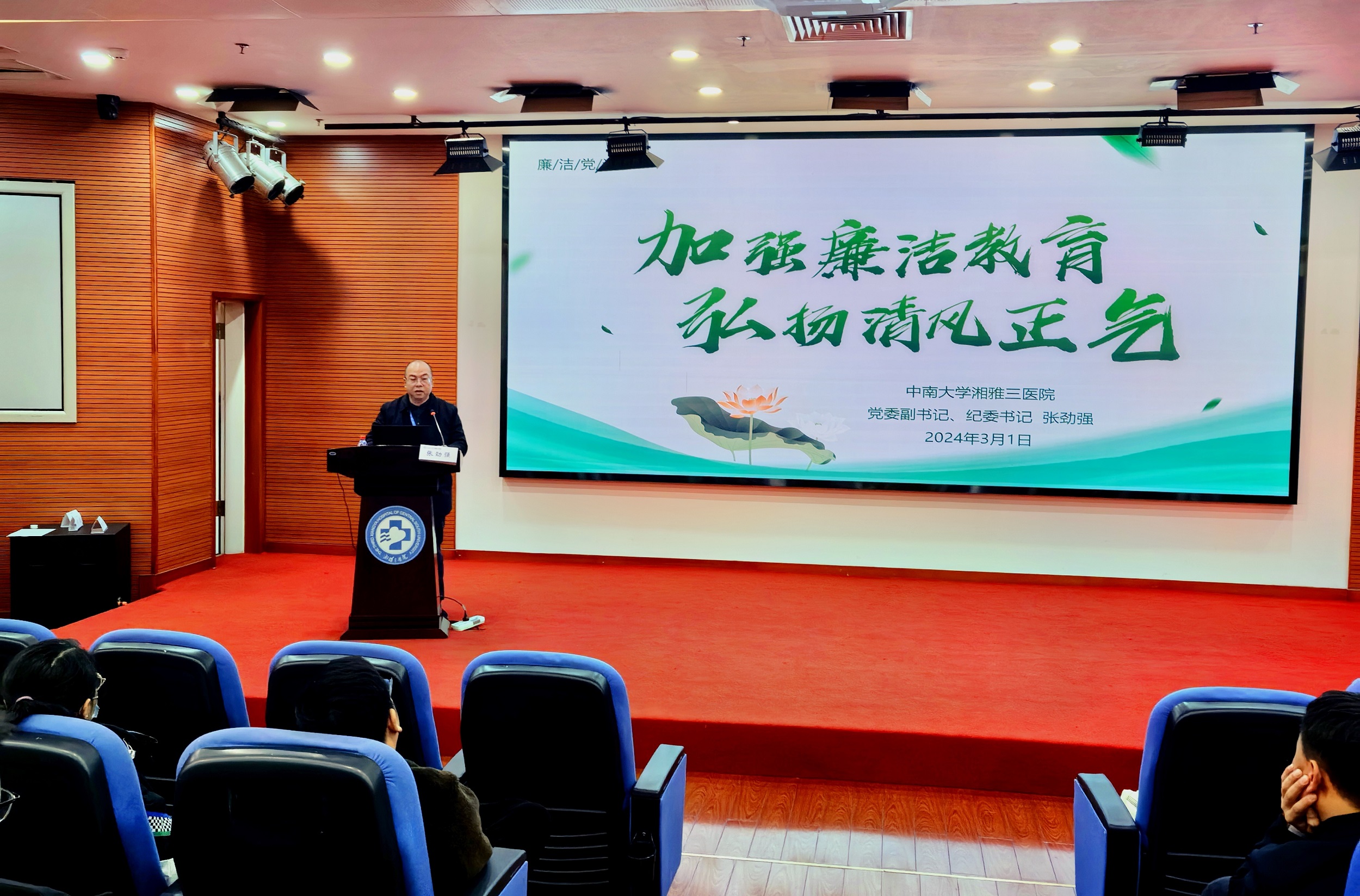 3月1日,中南大学湘雅三医院在外科楼二楼学术报告厅举办了2024年第一批次进修人员岗前培训,参加培训的进修人员共计125人,涵盖医师、技师、护士等类别。医院党委副书记、纪委书记张劲强,党委委员、副院长曹科出席会议。本次培训由毕教办副主任姜艳红主持,旨在让进修人员充分了解新湘雅医院文化、发展建设、工作岗位要求,尽快完成角色转化。