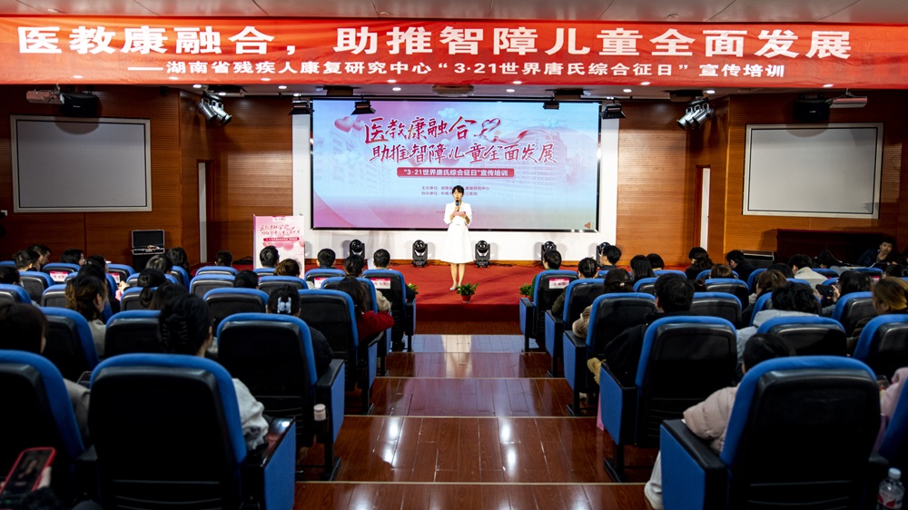 2024年3月21日是第十三个“世界唐氏综合征日”。为促进医教康融合,助推智障儿童全面发展,中南大学湘雅三医院联合湖南省残疾人康复研究中心、部分普特融合学校、幼儿园等举办了第十三个“世界唐氏综合征日”主题活动。省残联党组成员、副理事长金新娟,中南大学湘雅三医院党委书记何庆南,党委副书记杨飞龙出席活动,省残联康复部、省残疾人康复研究中心、中南大学湘雅三医院、部分普特融合学校及幼儿园、基层康复机构等单位约150人参加活动。