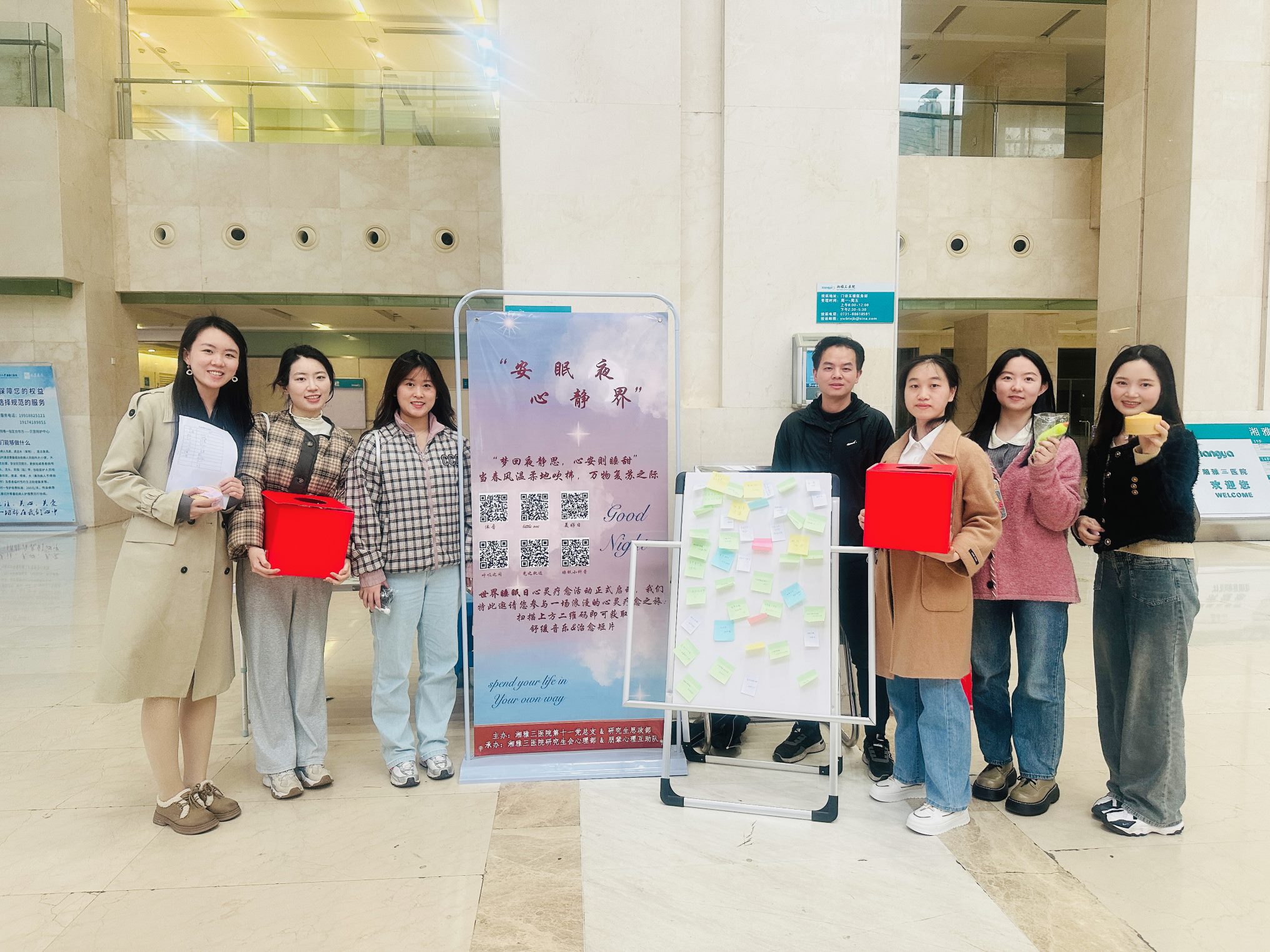 3月21日世界睡眠日当天,由中南大学湘雅三医院第十一党总支、研究生思政部主办,医院研究生会心理部、朋辈心理互助队承办的世界睡眠日主题活动——“安眠夜、心境界”在湘雅三医院外科楼一楼、湘雅医学院顺利举办。活动旨在进一步提升民众对睡眠重要性的认识,强调健康睡眠与心理健康之间的紧密联系。