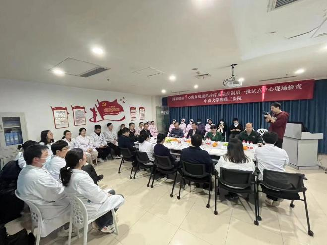 钱立元主任对乳腺癌规范化诊疗质控试点中心进行了工作汇报,重点介绍了乳腺癌规范化诊疗中心的硬件及人员配置,医疗质量管理工作,影响力和规范化打造成果。随后,评审团队参观了乳甲外科病房、病理科和放射科,对乳腺MDT团队环境和设备进行了现场检查,并抽查了已存档的乳腺癌病例。评审团队对湘雅三医院乳腺诊疗质控中心的诊疗质控工作给予了高度肯定。