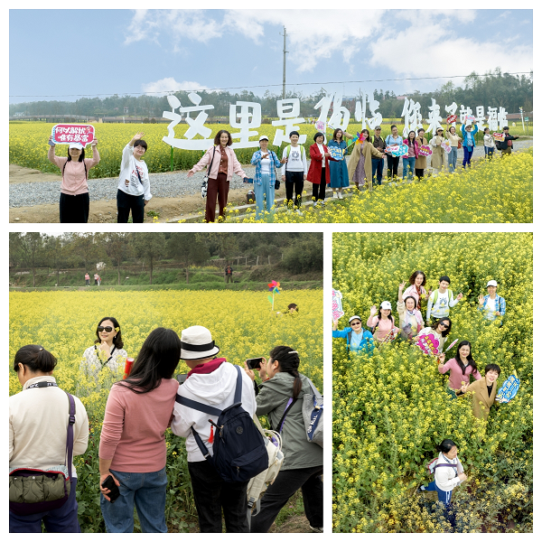 接着,一行人前往长沙县福临驿站油菜花基地开展油菜花田手机采风摄影。3月油菜花盛开,金灿灿的花海绵延数里,微风吹过花海泛起金色波浪美不胜收,沿着小路漫步在金色的花海里,感受春天的恣意绚丽和芬芳。走上景观步道,“沉浸式”体验春日乡村田园画卷。
