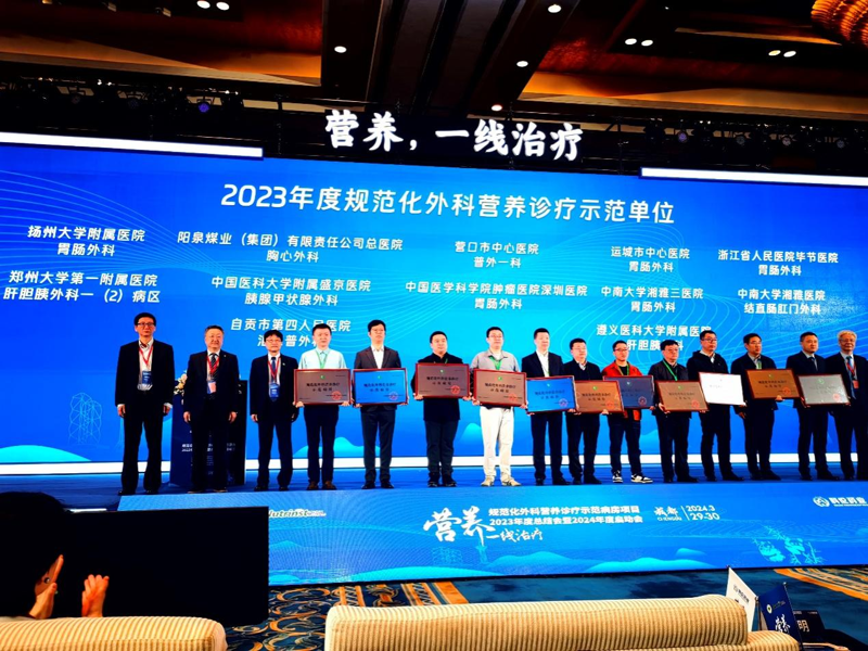 3月30日,由中国抗癌协会肿瘤营养专业委员会主办的2024全国规范化外科营养诊疗示范病房项目总结大会在成都隆重举行,大会汇集了来自全国各地的专家学者以及业界领袖。经过严格筛选和评审,湘雅三医院胃肠外I科获评“全国规范化外科营养诊疗示范病房”,是湖南省首次申报“全国规范化外科营养诊疗示范病房”获批的二家单位之一。