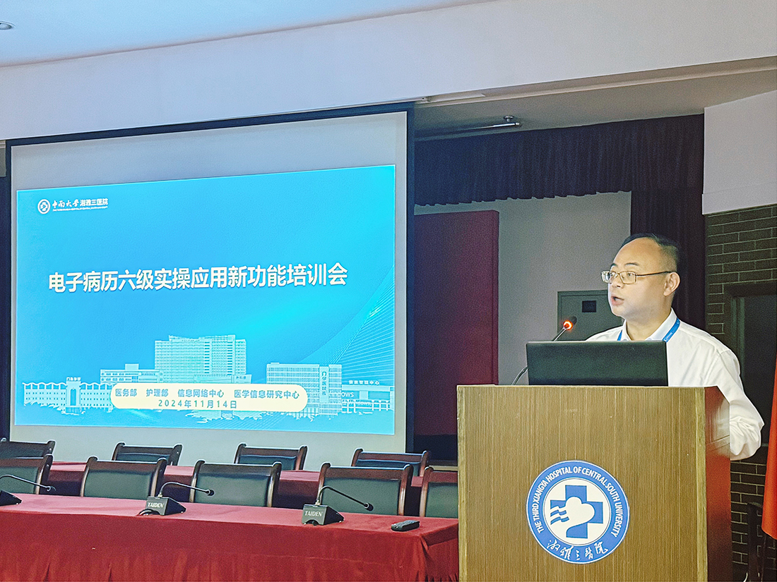 11月14日下午四时,中南大学湘雅三医院在急诊楼五楼会议室召开电子病历六级实操应用新功能培训会。湘雅三医院院长江泓出席并做重要指示,全院护士长、总住院及各科室信息第一责任人近150余人参会。培训会由党委副书记杨飞龙主持。