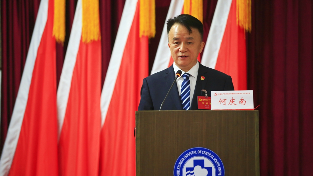 何庆南同志代表中共中南大学湘雅三医院第四届委员会作了《向新而行以质致远——奋力谱写新时代新湘雅高质量发展新篇章》的报告。