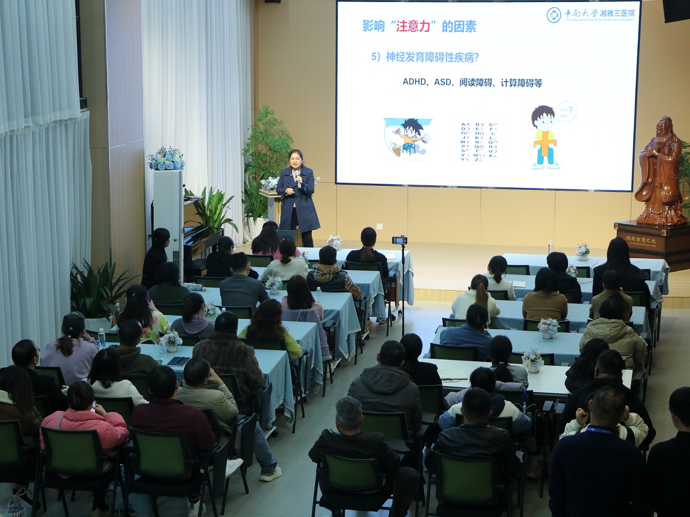 11月24日晚,中南大学湘雅三医院儿童保健中心田朗副主任医师受邀在长沙市岳麓区博致学校举办的智慧家长课堂中进行专题讲座,以“我不是不听话”为题,跟家长探讨亲子沟通,共建“家校医”命运共同体。现场吸引了100多名家长,家校医联动,聚焦亲子关系“症结”,探寻沟通良方,学习培养孩子注意力的有效方法。