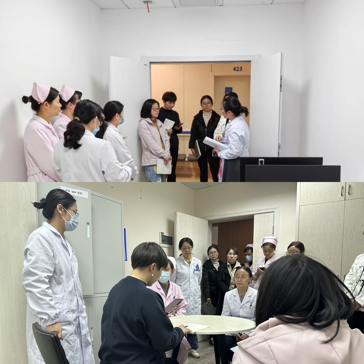 会议结束后,专家组前往三个专业进行了现场检查,重点查看受试者随访室、资料室、GCP药房和急救设施等场所与设备设施。专家组对新增备案专业主要研究者资质及参与项目佐证材料、研究团队成员资质及培训、临床试验管理制度、标准操作规程和设备设施台账管理等文件进行检查,并现场提问研究团队成员GCP、法律法规和临床试验技能等内容。