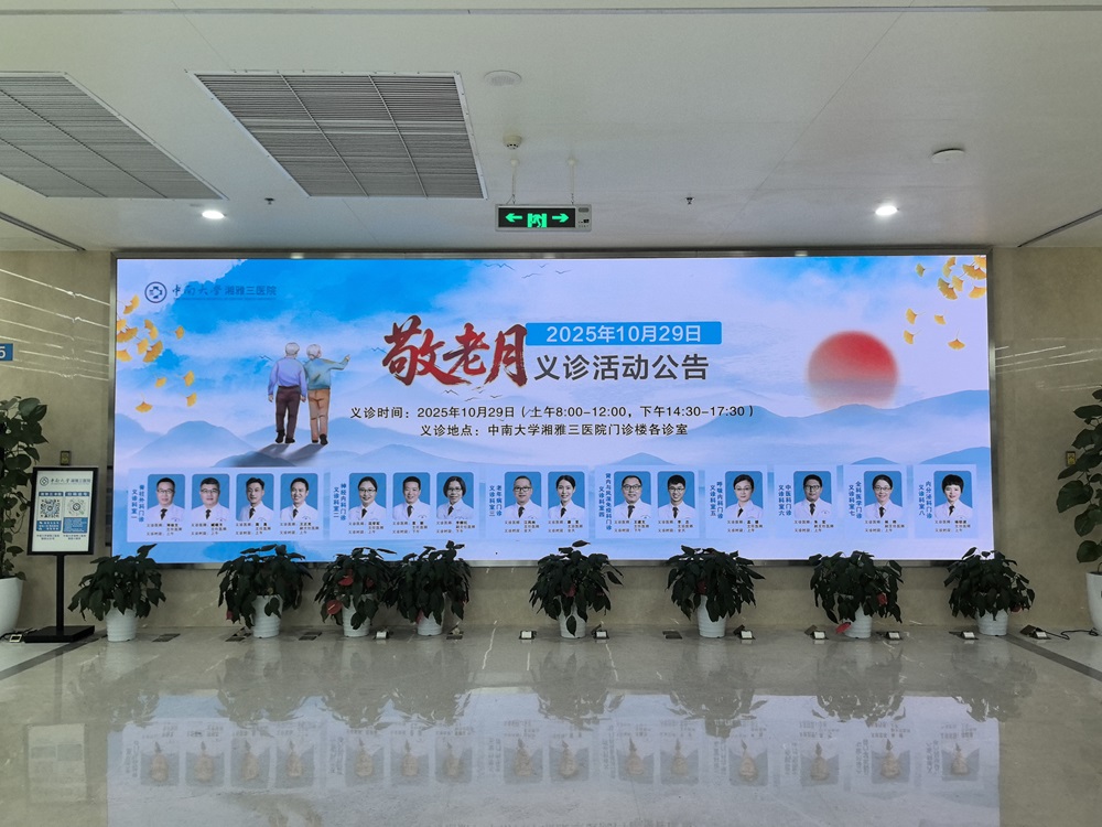 金秋送爽,丹桂飘香,10月29日,中南大学湘雅三医院门诊开展“敬老月”系列活动,由脊柱外科、老年医学科、神经内科、内分泌科、肾内与风湿免疫科、呼吸与危重症医学科、中医科、全科医学科的8名主任医师、4名副主任医师及3名主治医师组成的义诊团队,在2025年重阳节来临之际,为369名老年朋友送上特殊的节日“健康礼”。