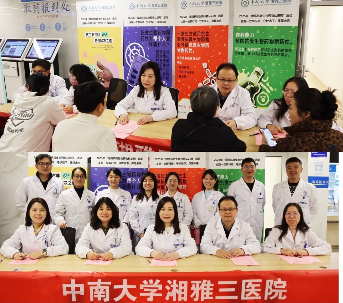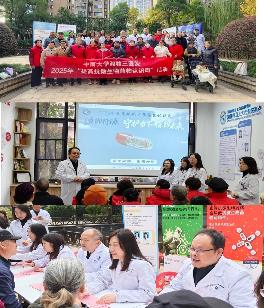 11月18-24日是世界第十一个“世界提高抗微生物药物耐药性认识周”,2025年的主题是“立即行动:守护当下,保障未来”。中南大学湘雅三医院药学部联合医务部、医院感染控制中心、护理部、门诊办、医保中心以及抗菌药物科学化管理(AMS)小组举办“2025年世界提高抗微生物药物耐药性认识周”系列活动,旨在提高全社会合理使用抗微生物药物的意识和水平。