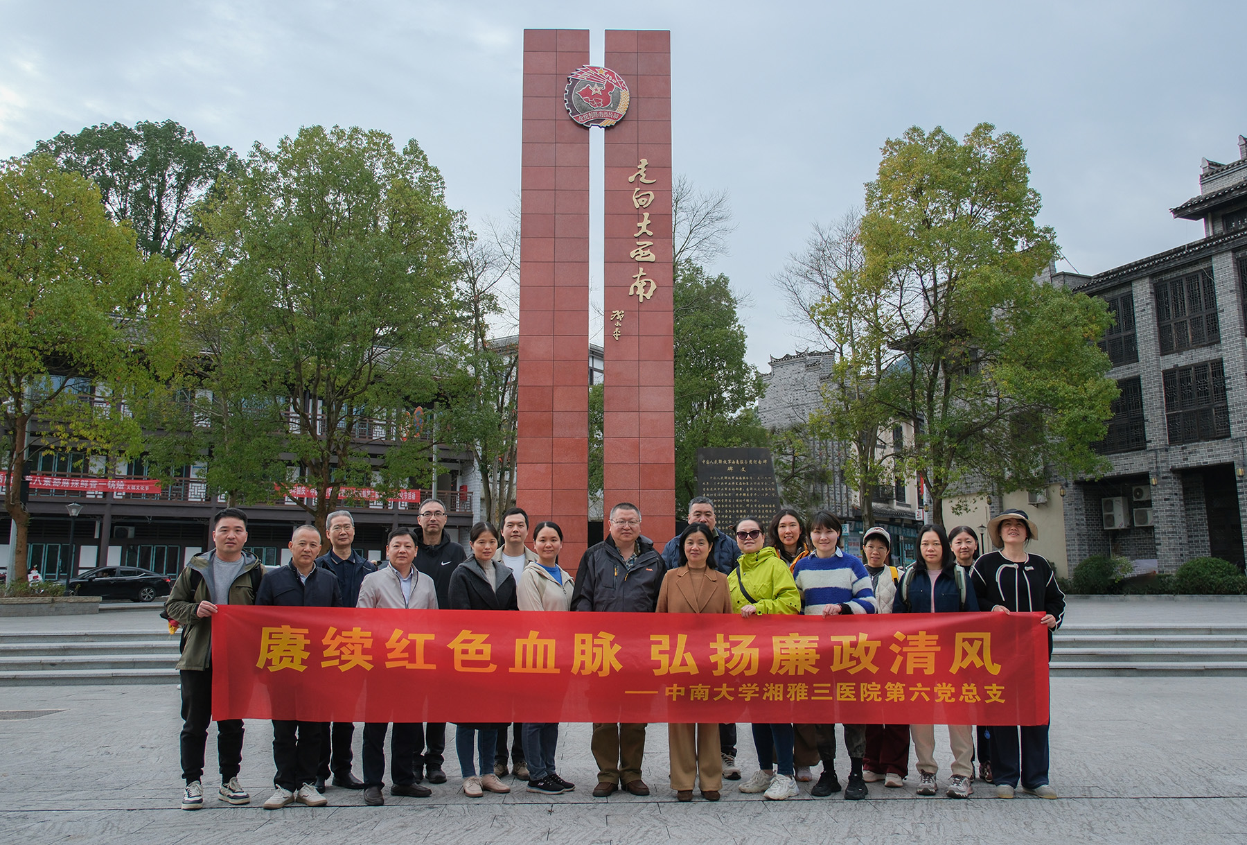 11月22日至23日,中南大学湘雅三医院第六党总支检验科、医学实验中心党支部联合赴湘西地区,开展以“赓续红色血脉·弘扬廉政清风”为主题的党日活动。全体党员同志循着革命先辈足迹,走进爱国主义教育基地与廉政文化阵地,在实地研学中接受精神洗礼,凝聚奋进力量。