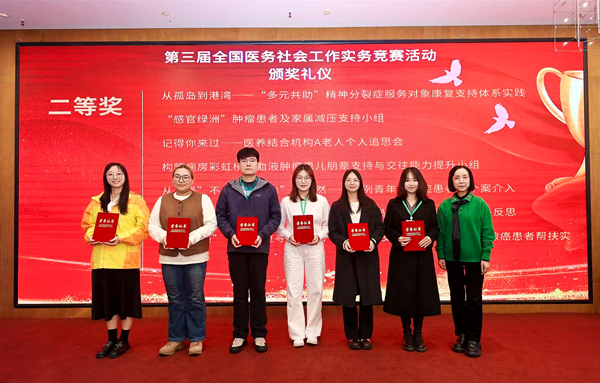 11月7日至9日,第三届全国医务社会工作实务竞赛暨医务社会工作实务论坛在山西太原隆重举行。本次活动由中国社会工作教育协会、中共山西省委社会工作部指导,中国社会工作教育协会医务社会工作专业委员会、山西医科大学第一医院、太原科技大学、北京枫林社会工作发展中心等单位联合主办。本次竞赛覆盖范围广、专业水平高,吸引了来自全国高校、医院、社会组织及基金会的158份有效参赛案例。经过严格的初评与专家评审,最终有61份优秀案例晋级决赛路演。湘雅三医院医务社工团队凭借案例《构筑病房彩虹桥:血液肿瘤患儿朋辈支持与人际交往能力提升小组》在决赛中表现出色,荣获全国二等奖,展示了新湘雅医务社工团队的专业实力与临床服务水平。
