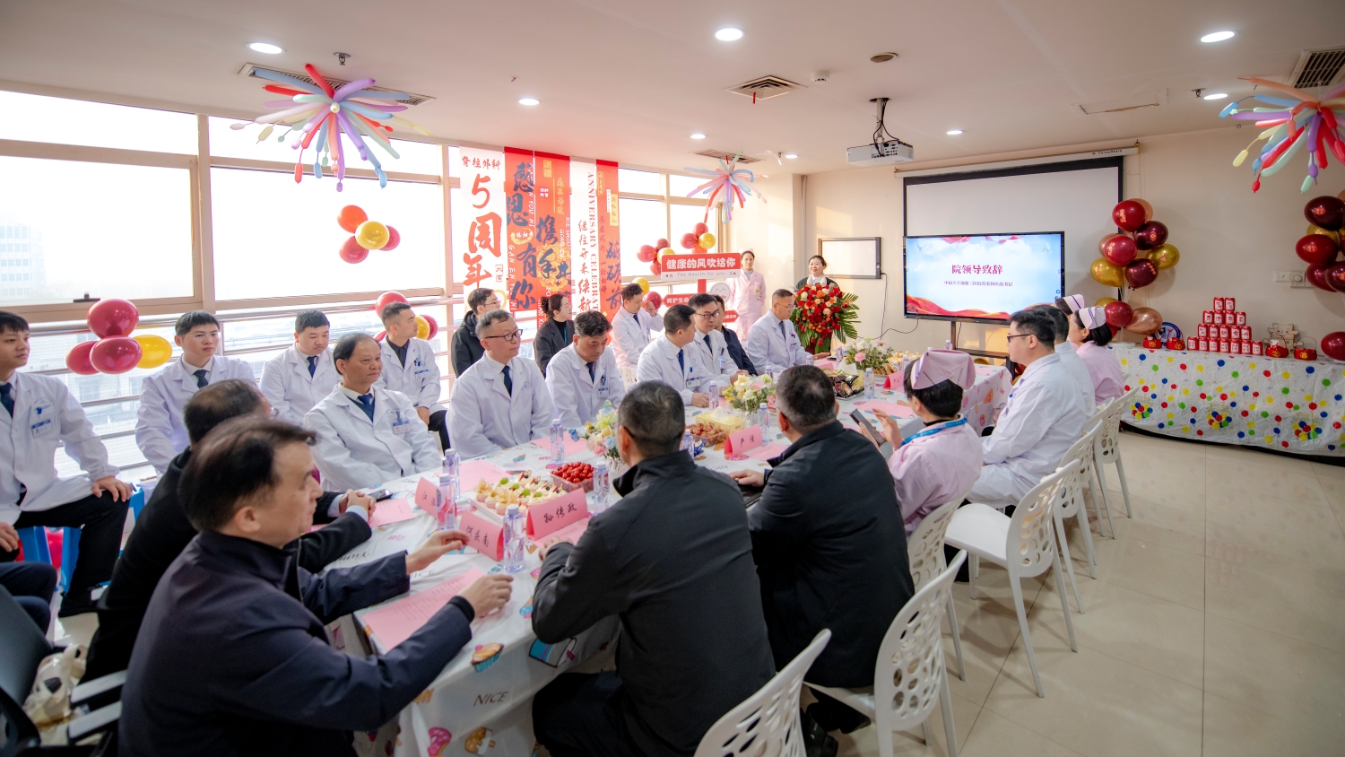 12月8日上午,中南大学湘雅三医院脊柱外科召开“医心为民,创新奋进”——新湘雅脊柱外科建科五周年总结会。医院党委书记何庆南、院长江泓、副院长孙传政出席会议,相关职能部门负责人与脊柱外科全体医护人员共同回顾五年奋斗历程,谋划未来发展蓝图。会议由第五党总支书记余希主持。