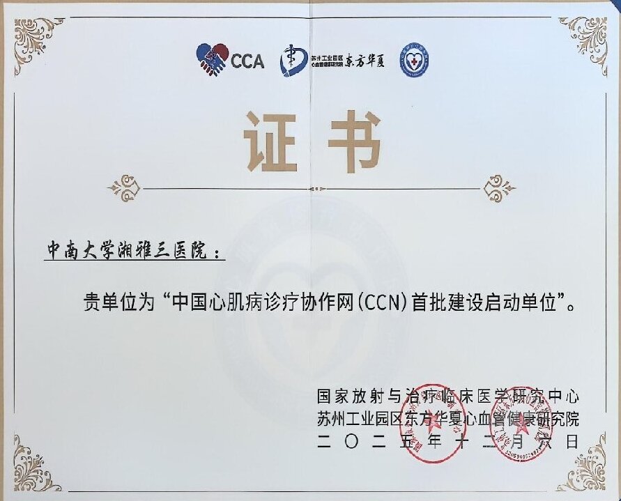 中南大学湘雅三医院此次成功入选“全国心肌病协作网” 首批建设单位,是国家权威机构对我院心肌病诊疗水平的高度认可,为医院学科发展提供了重要契机。中南大学湘雅三医院心血管内科依托医院强大的临床资源,承担所有心力衰竭与心律失常、心肌病专科门诊及住院病人的治疗、预防、科研及教学工作,是国家心力衰竭医联体湖南中心、中国心衰中心示范中心、中国房颤中心示范中心,2020年牵头成立湖南省心衰中心联盟,作为湖南省心衰中心联盟组长单位,心律失常与心衰专科主任张志辉教授带领团队开展 “新湘雅房颤与心衰百县巡讲”,目前全省33家医院通过认证(23家标准版、10家基层版),过去5年,团队通过线上线下结合开展近60场规范化巡讲,“一对一” 帮扶30余家医院。2023年7月启动心肌病诊疗规范提升项目,成立心肌病中心,旨在聚焦诊疗流程、诊断能力、精准识别和提升认知,全面推动我国心肌病的规范诊疗,并开展了联合心理科、营养科、药剂科、康复科的MDT心衰患者综合管理,率先开展了心肌病相关的基因检测及心肌病MDT门诊,形成了心衰诊断和治疗的规范化流程。成为首批建设单位既是荣誉更是责任,未来,中南大学湘雅三医院将以协作网建设为契机,持续强化心肌病诊疗能力建设,积极推动诊疗规范普及、临床研究与技术创新。