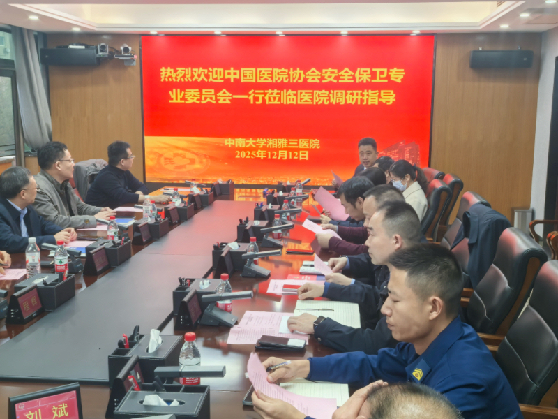12月12日下午,中国医院协会安全保卫专业委员会副主任委员、华中科技大学同济医学院附属协和医院副院长季湘年等一行莅临中南大学湘雅三医院,就医院安全保卫工作开展专题调研。医院副院长容鹏飞,长沙市湘江新区公安局内保大队、银盆岭派出所,岳麓区消防救援站相关人员,医院安全保卫部主任严文广及相关职能部门负责人参加座谈并陪同调研。