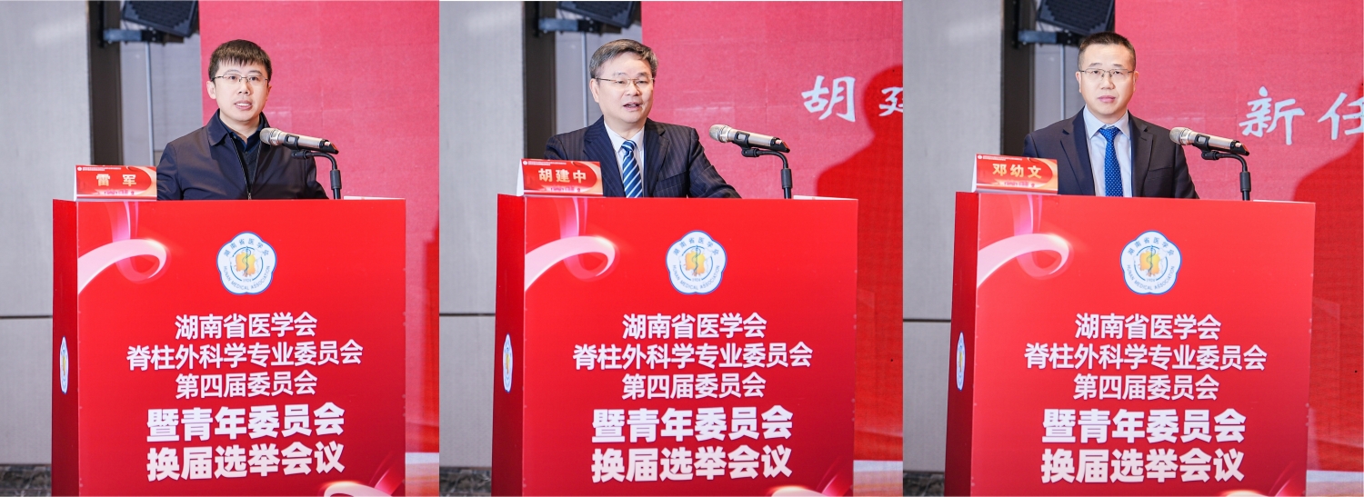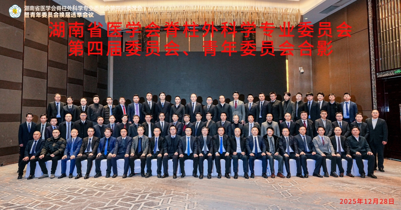 2025年12月28日上午,湖南省医学会脊柱外科学专业委员会换届选举暨第一届青年委员会成立会议在长沙召开。经大会选举,中南大学湘雅三医院脊柱外科邓幼文主任当选湖南省医学会脊柱外科专业委员会第四届委员会主任委员兼第一届青年委员会主任委员。