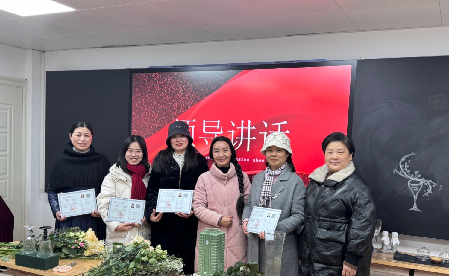 1月20日,新湘雅花艺茶苑协会第四期现代生活花艺班结业典礼在综合楼教职工美育教室举行。工会常务副主席熊晓云参加,与近20名来自医药技护管理领域的学员共同见证结业时刻。