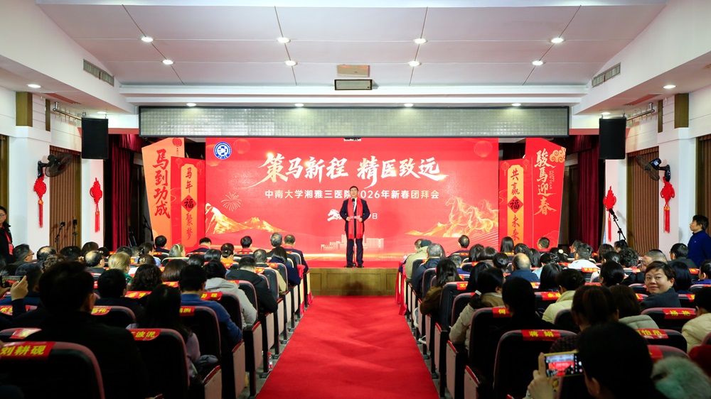 2026年1月29日下午,中南大学湘雅三医院举行迎春团拜会暨2026年首月管理例会,医院急诊楼五楼多功能厅为主会场,外科楼二楼报告厅为分会场。会议以“策马新程 精医致远”为主题,全体院领导、中层管理干部、护理骨干、离退休老同志代表等欢聚一堂,共同回顾过去一年的奋斗历程,擘画新一年的发展蓝图,并以精彩的文艺表演共迎新春。会议由医院党委副书记杨飞龙主持。