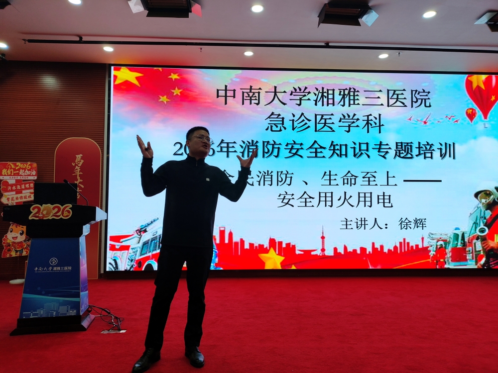 2026年2月2日,农历马年春节即将到来。在这万家团圆、安全至上的重要节点,湘雅三医院急诊医学科与安全保卫部协同开展了一场重点突出、针对性强的消防安全培训,将消防安全作为春节安全保障工作的重中之重,全面提升医务人员在节日期间的火灾防范与应急处置能力。