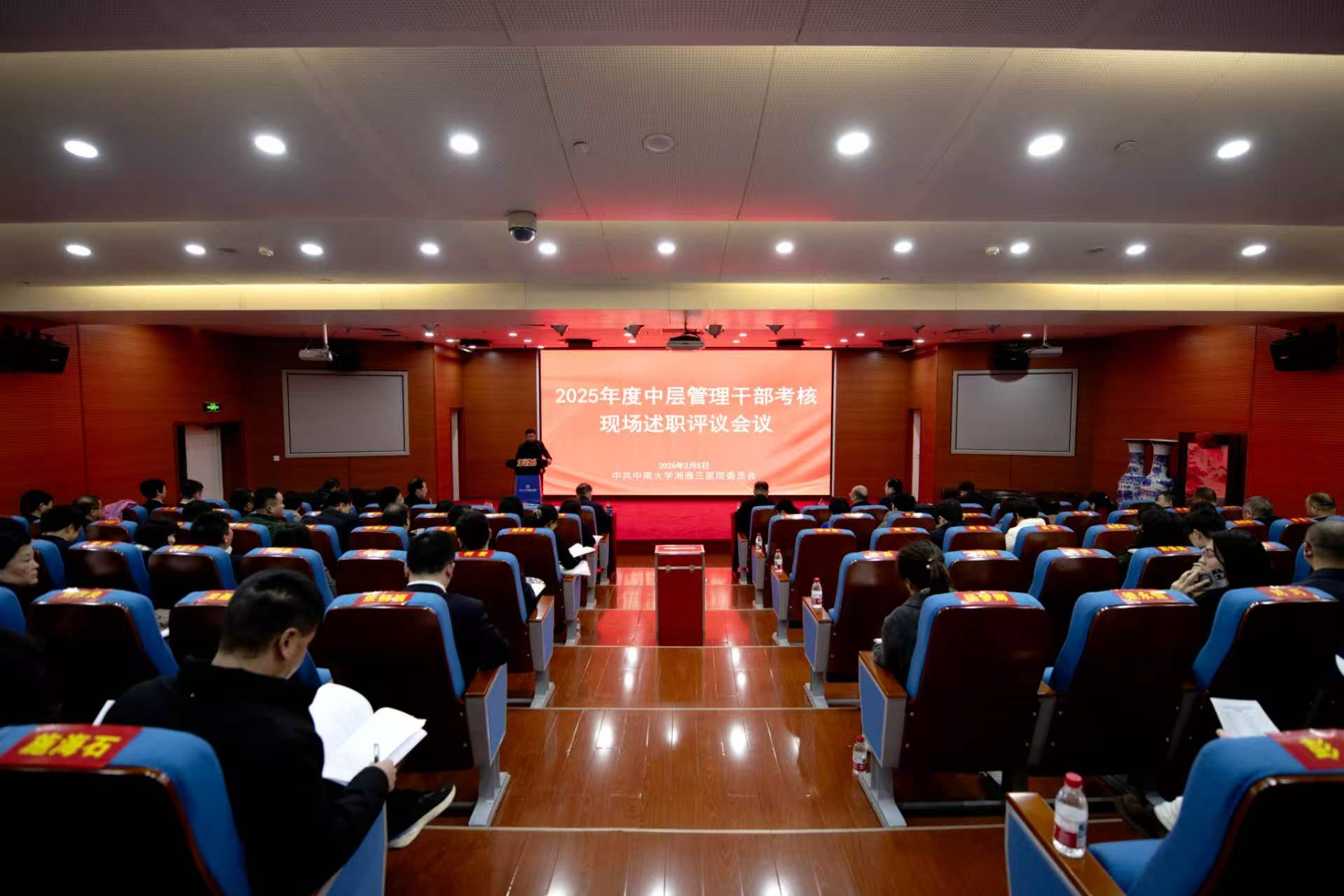 2026年2月5日,中南大学湘雅三医院组织召开2025年度中层管理干部现场述职评议会议,旨在全面总结2025年度工作,展望2026年工作,加强对干部的考核和监督,促进干部担当作为,推动医院高质量发展,为“十五五”发展开好局。全体院领导、各党总支书记及行政后勤管理部门正副主任参加会议。会议由医院党委副书记杨飞龙主持。