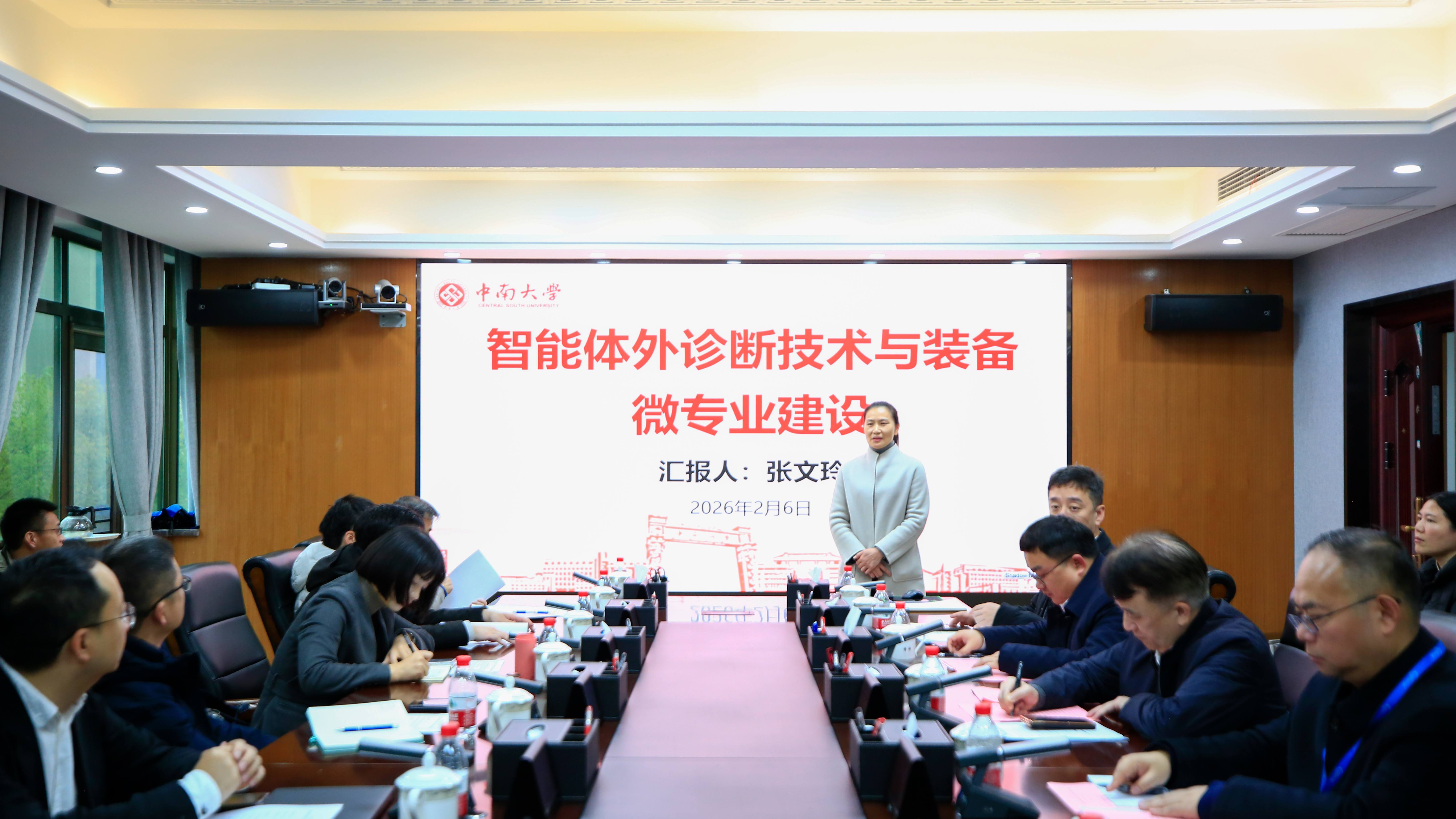 2026年2月6日,中南大学湘雅三医院“智能体外诊断技术与装备”微专业建设座谈会在综合楼三楼一会议室召开。医院党委书记何庆南,院长江泓,中南大学本科生院副院长张柯,教务部主任庄权,医学检验系教授徐克前、主任张文玲、副主任罗秀菊,检验科主任聂新民等院方领导专家,与来自广州金域、三诺生物、迈瑞医疗等10家行业领军企业的代表齐聚一堂,共同探讨医工交叉复合型人才培养的创新模式与校企协同机制。湘雅三医院党委委员、副院长曹科主持会议。