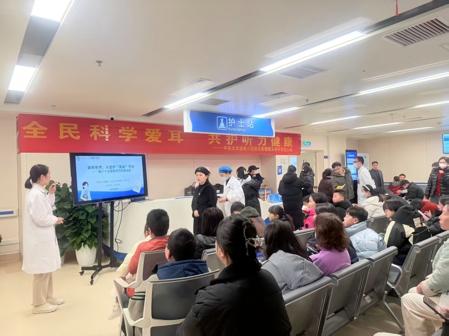 3月3日是第27个全国爱耳日。围绕国家卫生健康委“全民科学爱耳,共护听力健康”的主题,中南大学湘雅三医院耳鼻咽喉头颈外科组织开展了形式多样的义诊及科普活动。全科10余名医护人员参与,累计覆盖超过10万人。