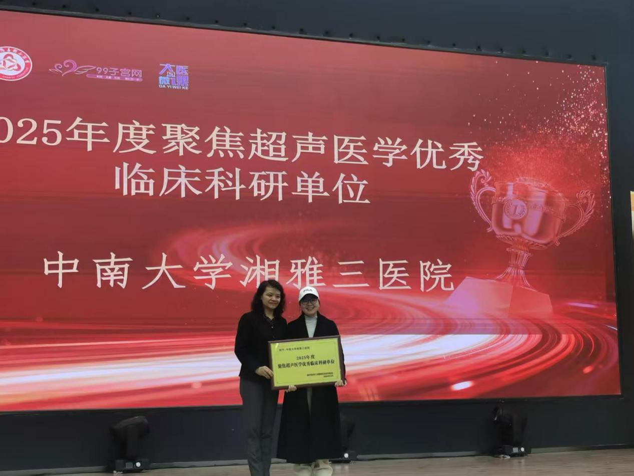 3月7日,由重庆医科大学超声医学工程国家重点实验室主办的“2025年度全国聚焦超声医学临床应用优秀单位及个人表彰大会”在重庆隆重举行。中南大学湘雅三医院凭借在该领域的卓越贡献与突出成就,一举斩获“2025年度聚焦超声医学临床应用优秀单位奖”“2025年度聚焦超声医学临床科研优秀单位奖”两项团队大奖。同时,该院妇科朱小刚主治医生荣获“2025年度聚焦超声领域自媒体科普卓越人物奖”。