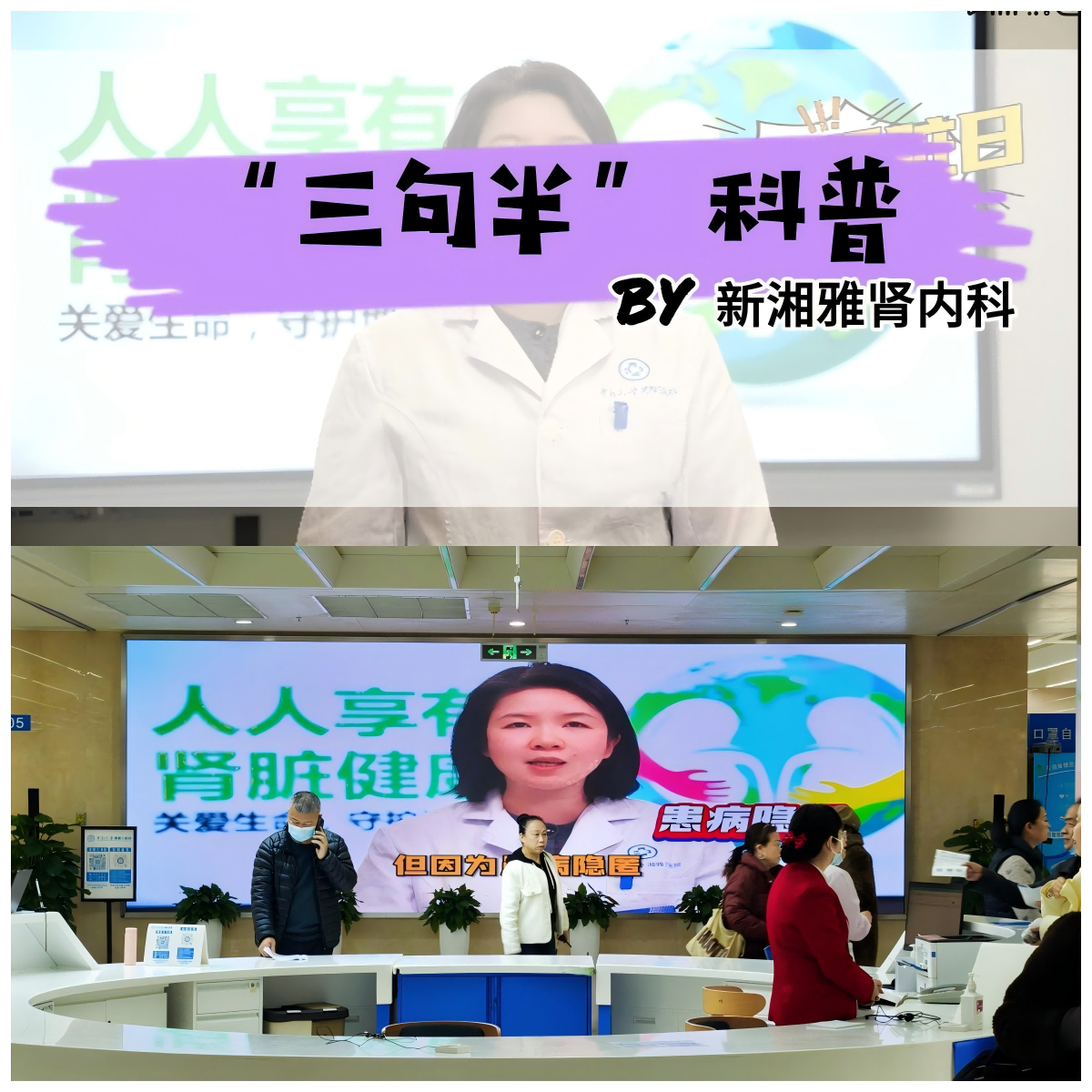 此外,肾病风湿病科刘妍副主任、周晴护士长、骆绍琴主管护师、李芯榕主管护师、朱宇群护师以创新科普形式,推出“三句半”科普短视频,围绕慢性肾病预防、饮食管理、日常护肾等核心内容,用节奏明快、诙谐幽默的台词拆解医学知识,既保留了专业准确性,又打破了传统科普的枯燥壁垒,让护肾理念深入人心。