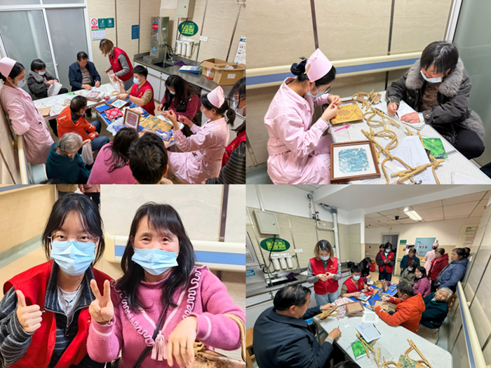 健康宣教结束后,活动进入手工疗愈环节。该环节由院团委、社志办社工负责组织实施,在社工和志愿者的陪伴与协助下,患者共同体验了新中式竹节包和珍珠宋锦画两项手工制作。活动现场,大家一边认真聆听制作步骤,一边动手尝试、互相交流,现场氛围轻松温馨。新中式竹节包清雅别致,兼具传统韵味与实用美感;珍珠宋锦画细腻雅致,富有东方美学气息。患者们在制作过程中不仅体验了手作的乐趣,也在一点点拼贴、整理与完成作品的过程中收获了专注、放松与成就感。