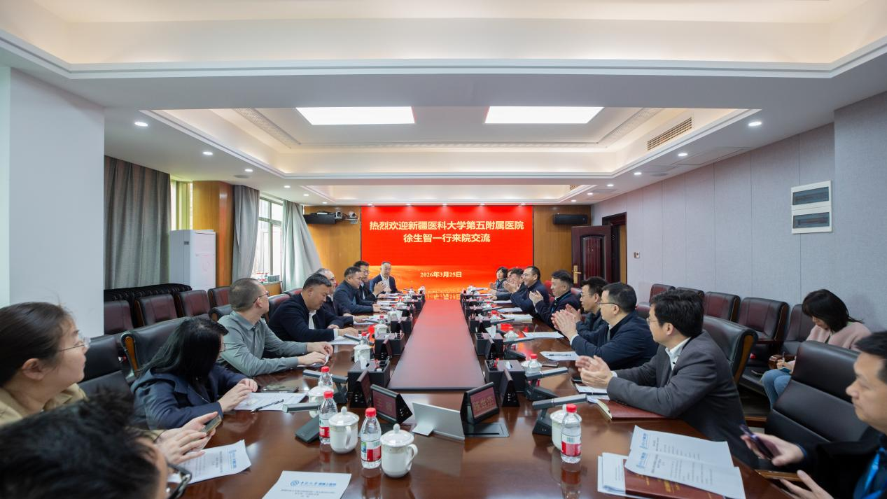 2026年3月25日,新疆医科大学第五附属医院党委书记徐生智,党委委员、副院长胡桂(援疆)一行到访中南大学湘雅三医院,双方开展深度交流研讨。医院党委书记何庆南及相关职能部门负责人出席会议。会议由湘雅三医院党委委员、副院长孙传政主持。