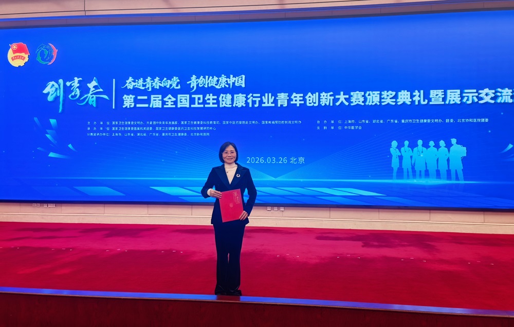 3月26日,“创青春”第二届全国卫生健康行业青年创新大赛颁奖典礼暨展示交流活动在北京举行。本次大赛是全国卫生健康行业规格最高、覆盖面最广、影响力最强的青年创新赛事之一。经逐级比赛,由中南大学湘雅三医院妇产科学教研室主任、妇科主任徐大宝教授指导,妇科赵行平青年团队申报的参赛项目喜获本次大赛临床医学赛道金奖,是全国临床医学赛道7个金奖之一,也是湖南省医疗机构本届大赛唯一的金奖,由第二十届中央候补委员,国家卫生健康委副主任、党组副书记、中央保健委副主任(正部长级)曾益新院士现场颁奖。此外,由皮肤与性病学教研室主任陈静主任医师指导,皮肤科副主任曾庆海副研究员申报的创新项目喜获本次大赛临床医学赛道优秀奖。大赛佳绩的取得,充分展现了湘雅三医院妇科、皮肤科等科室团队的实力与风采,也实现了湘雅三医院在全国顶级青年创新赛事中的又一次突破。